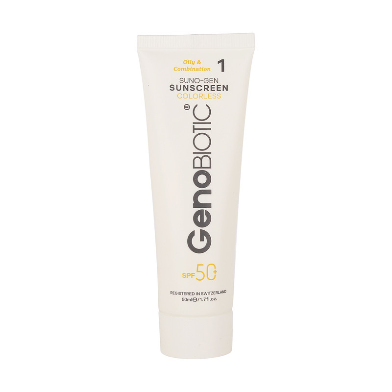 کرم ضدآفتاب بیرنگ ژنوبایوتیک SPF50 مدل 01 محافظ UVA ،UVB، مناسب پوستهای مختلط و چرب، حجم 50 میلیلیتر