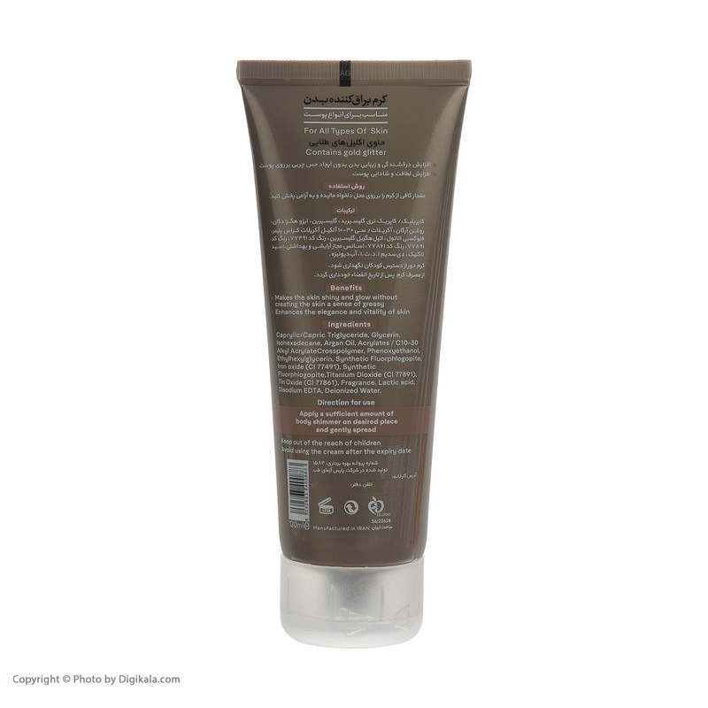 حاویاکلیل های طلاییحجم120 میلیلیترصادرکننده مجوزسازمان غذا و داروشماره مجوز56/22628سازگار با نوع پوستانواع پوستکشور مبدا برندایران