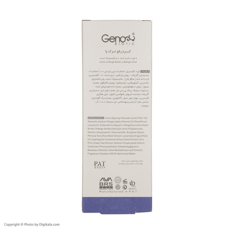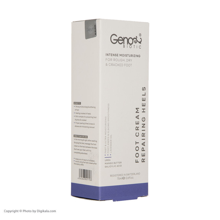 راهنمای استفاده: صبح و شب پس از شستشو و خشک نمودن پا، کرم رفع ترک پا ژنوبایوتیک را بر روی پاشنه، بین انشگتان پا و تمامی سطوح کف پا ماساژ دهید تا کاملا جذب شود.