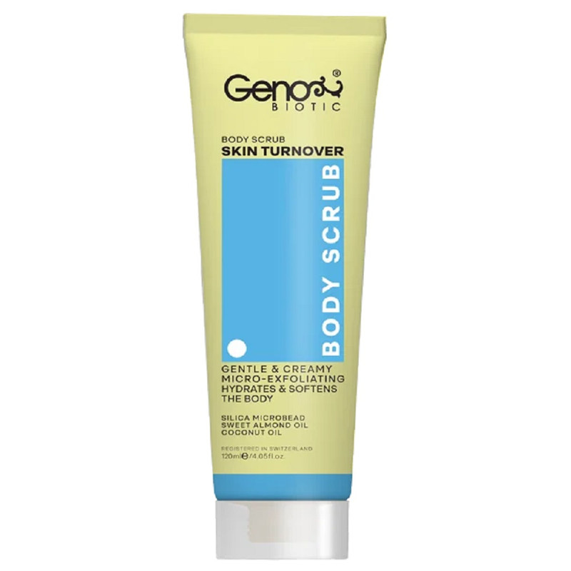 اسکراب بدن ژنوبایوتیک پاکسازی کننده عمقی منافذ پوست و روشن کننده است وباعث افزایش نرمی و لطافت پوست میگردد. اسکراب بدن Geno Biotic، دارای میکروبیدهای سیلیکا، یکی از بهترین ترکیبات برای رفع سلول های مرده پوست و لایهبرداری از پوست است. اسکراب بدن ژنوبایوتیک پوست بدن را عمیقا تمیز کرده و به دلیل داشتن روغن بادام شیرین پوست را روشنتر میکند. روغن نارگیل که دیگر ترکیب بهکار رفته در این محصول است، رطوبت و نرمی پوست بدن را حفظ میکند.