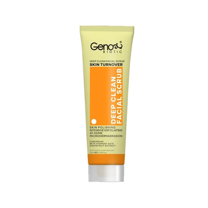 اسکراب قوی صورت Geno Biotic مناسب افراد با انواع پوست و همچنین پوست های چرب و مختلط میباشد و حاوی کوراندم و بتا-هیدروکسی اسید است.