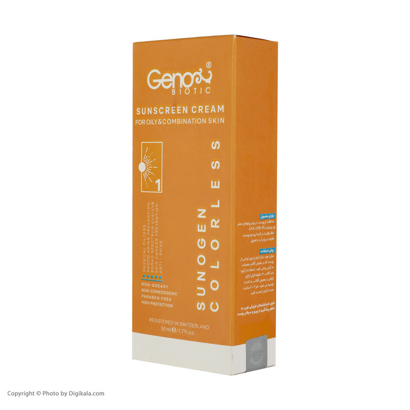 کرم ضد آفتاب مخصوص پوستهای چرب ژنوبایوتیک دارای مواد موثره گیاهی است و با فیلتر کردن اشعههای UV، نقش موثری در مهار اثرات مضر پرتوهای UVA و UVB دارد. بافت این کرم مخصوص پوستهای چرب طراحی شده و علاوه بر ویژگی پوشانندگی بالا، فاقد چربی است و با دارا بودن بافت سبک، مانع از انسداد پوستی و تشکیل آکنه میشود.