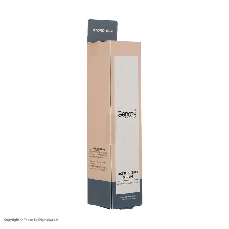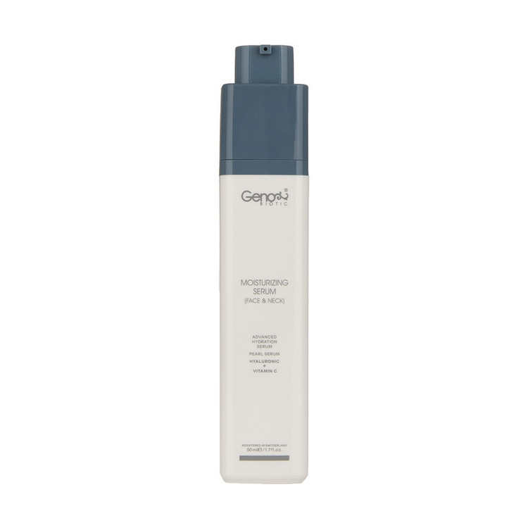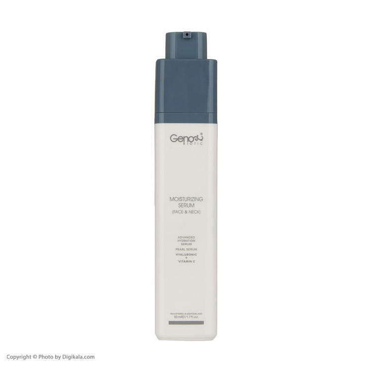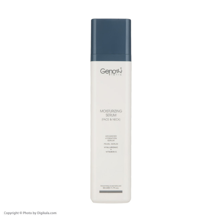سرم رطوبت رسان ژنوبایوتیک حاوی هیالورونیک اسید، ویتامین سی و عصاره مروارید است و مناسب انواع پوست است.