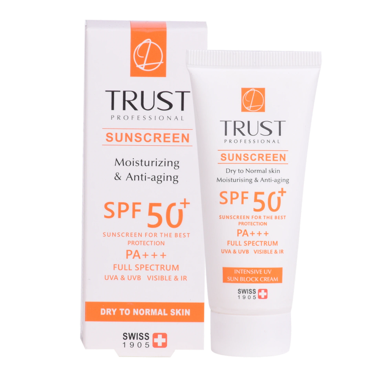 کرم ضدآفتاب و ضدپیری SPF +50 تراست، با استفاده از مرغوبترین و جدیدترین مواد اولیه همچون هیالورونیک اسید و کوآنزیم کیوتن از پوست شما دربرابر پرتوهای مضر آفتاب به طور کامل محافظت میکند. این کرم علاوه بر مهار رادیکالهای آزاد و محافظت از پوست دربرابر آلودگیهای محیطی، از تخریب سلولهای پوستی، بروز چینوچروک، پیری زودس و لکهای ناشی از آفتاب نیز جلوگیری میکند. این محصول بافتی سبک داشته و با قابلیت جذب سریع و آبرسانی قویِ پوست خشک و حفظ رطوبت آن، پس از مصرف منافذ پوستی را نبسته و هیچ خللی در روند تنفس سلولهای پوستی ایجاد نمیکند.