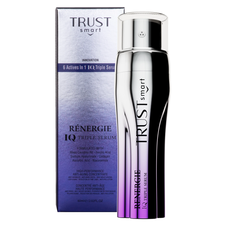 سرم سهگانه هوشمند تراست برای اولین بار به عنوان قویترین محصول حاوی سه نوع سرم روشنکننده، ضد چروک و جوانساز پوست در قالب یک محصول طراحی شده است. سرم روشنکننده حاوی ترکیبات فعال اصلی ویتامین C و نیاسینآمید است که به طور چشمگیری به رفع لکهای پوست و جلوگیری از تیرگی پوست ناشی از عوامل مختلف کمک میکند. این محصول با داشتن ترکیبات فعال فرولیکاسید و مزوکمپلکس آر ای در فرمولاسیون سرم جوانساز خود، توانایی بینظیری برای ساخت سلولهای جدید پوستی و بازسازی و جوانسازی پوست دارد. مزوکمپلکس مورد استفاده در فرمولاسیون این سرم، با داشتن انواع ترکیبات فعال پپتیدی، آمینواسیدها، هیالورونیکاسید، مواد معدنی و انواع ویتامینها، تاثیر منحصر به فردی در بازسازی و جوانسازی پوست دارد. کلاژن و هیالورونیکاسید مورد استفاده در فرمولاسیون سرم ضد چروک هم بعد از استفاده از سرم بر روی پوست تاثیر همافزایی با مزوکمپلکس و فرولیک در آبرسانی، رفع چین و چروکها و افزایش استحکام پوست دارد. بنابراین سرم سهگانه هوشمند تراست با داشتن سه نوع سرم با ترکیبات فعال آبرسان، افزایشدهنده استحکام پوست، جوانکننده و ضد چروک و روشن کننده پوست، به عنوان محصولی متفاوت و بینظیر به بازار معرفی گردید.