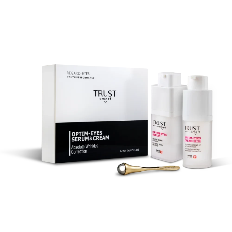 مهار کننده رادیکالهای آزاد و رفع چین و چروکهای سطحی دور چشم با داشتن ترکیبات آنتیاکسیدانی قوی مثل نیاسینآمید، روغن آرگان، syneye، عصاره سلول بنیادی دانه انگور، میتوکینیل، سیمدتوکس، کوآنزیم کیوتن و توکوفریلاستات افزایش استحکام و سفت کننده دور چشم با داشتن ترکیبات فعال پروتئین کلاژن هیدرولیز شده، کمپلکس سرامید، syneye، eyeregener، سیملیفت، Duraquench IQ، هیالورونیکاسید و روغن آرگان آبرسان عمیق پوست دور چشم با داشتن ترکیبات فعال هیالورونیکاسید، سیملیفت، دیپنتنول، آکواکسیل و Duraquench IQ جوانساز و برطرفکننده چین و چروکهای دور چشم با واسطه ترکیبات فعالی که به ساخت سلولهای جدید و رفع التهابات پوستی کمک میکنند، ترکیبات فعال syneye، eyeregener، عصاره سلول بنیادی دانه انگور و میتوکینیل پر کننده چین و چروکها و رفع شلشدگی و افتادگی پوست با داشتن ترکیبات پپتیدی سفتکننده و تغذیهکننده سلولهای پوستی syneye، دیپپتاید-۲ و پالمیتوئیل تتراپپتاید-۷ و پالمیتوئیل تری پپتاید-۳۸ مواد مؤثره سرم لیفت کننده و ضد چروک دور چشم تراست اسمارت
