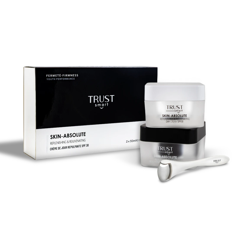 جوان کننده پوست با داشتن ترکیبات فعال پپتیدی، آمیتوز 3GA، Duraquench IQ، عصاره سلول بنیادی دانه انگور، میتوکینیل، ویوندین و کوآنزیم کیوتن افزایش استحکام پوست و رفع چین و چروکهای پوستی با داشتن ترکیبات فعال پپتیدی تتراپپتاید-۴، تتراپپتاید-۶۱، سرامید NP، هیالورونیکاسید و توکوفرول مهار کننده پرتوهای UV و روشنکننده پوست با داشتن ترکیبات فعال آمیتوز 3GA، نیاسینآمید، سیمبرایت، سیمدتوکس و میتوکینیل حاوی ترکیبات فیلتر کننده پرتوهای UV و مراقبت از پوست در برابر این پرتوها با داشتن SPF 30+ تسکیندهنده التهابات پوستی با داشتن ترکیبات فعال ویوندین، نیاسینآمید، روغن آرگان و بیزابولول مواد مؤثره کرم روز تراست اسمارت: