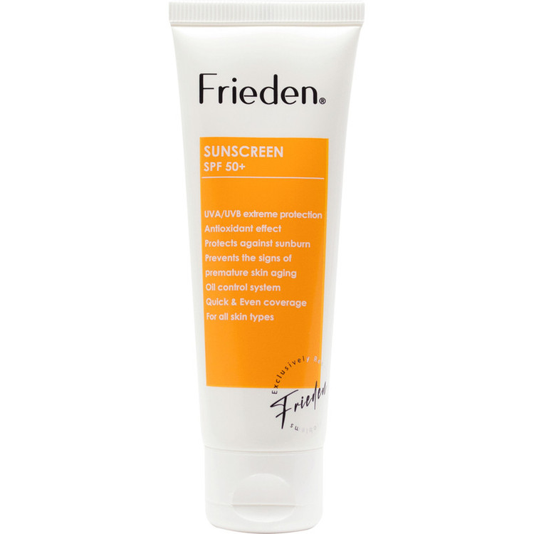 کرم ضد آفتاب بی رنگ فریدن spf50 وظیفه محافظت در برابر اشعه های UVA/UVB و دفع اثرات مخرب آفتاب محافظت از DNA سلولی را برعهده دارد و یک آنتی اکسیدان قوی و روشن کننده، ضد التهاب و قرمزی پوست می باشد.