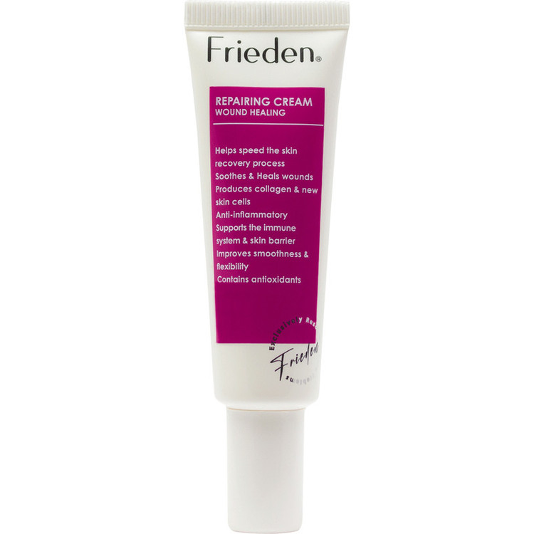این محصول مراقبت پوست، سرشار از آنتی اکسیدان و حاوی ترکیبات گیاهی شی باتر، هایلورانیک اسید، روغن بادام شیرین، دایمتیکون و ویتامین E می باشد. کرم ترمیم کننده فریدن، به تجریک تولید کلاژن و ساخت سلول جدید کمک کرده و از پوست در برابر رادیکال های آزاد محافظت می کند. ترمیم و بازسازی پوست آسیب دیده و همچنین تسکین التهاب، قرمزی و خارش پوست از دیگر خواص منحصربفرد این محصول به حساب می آید