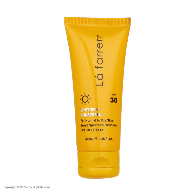 کرم ضدآفتاب و ضد لک بی رنگ لافارر مدل SPF 30 مناسب پوست های خشک و معمولی حجم 40 میلی لیتر
