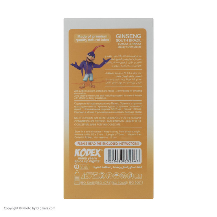 کاندوم تاخیری جینسینگ کدکس مدل Ginseng بسته 12 عددی