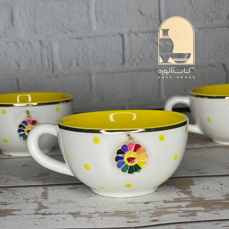 فنجان سرامیکی آویز گل آفتابگردان تزئین شده با طلای 11 عیار در لبه های فنجان . این محصول دست ساز میباشد 3 مرحله در کوره و در دمای 1100 درجه پخت شده و با تحمل شک حرارتی بالا این محصول رنگ . لعاب . طرح و نقش ثابت و کاملا براق و با کیفیت می باشد این محصول دارای یه پلاک آویز گل آفتابگردان میباشد که قشنگی آن را چند برابر کرده این محصول قابل شستشوی است و این محصول بدون کوچکنرین لب پری و ترک و لک میباشد و کاملا براق است