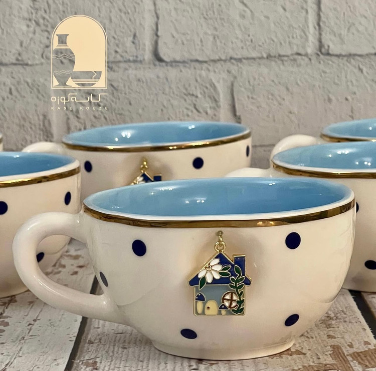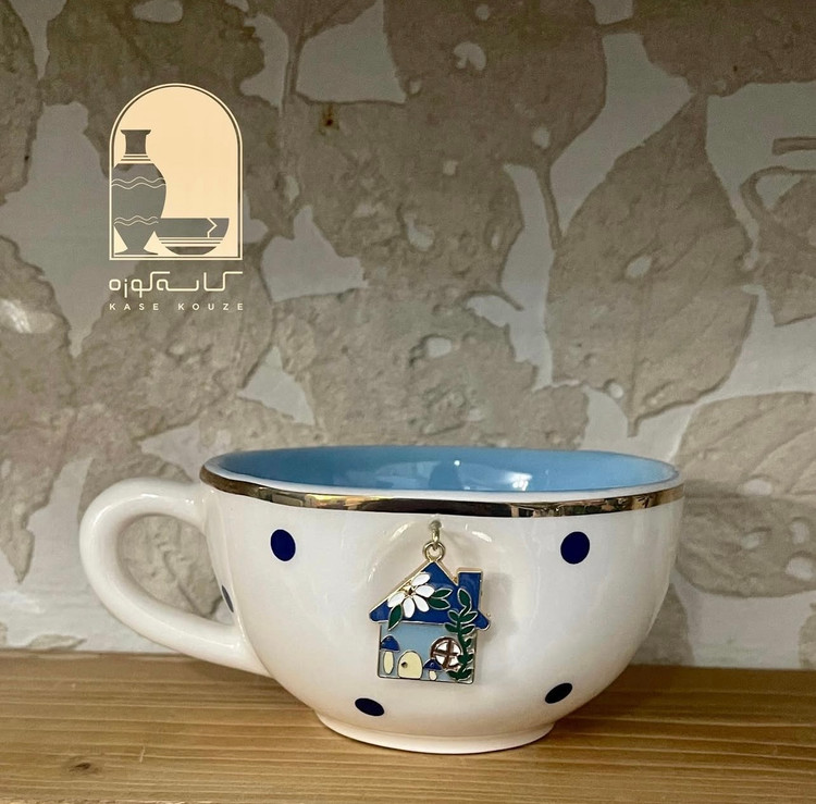 فنجان سرامیکی آویز خونه نظر تزئین شده با طلای 11 عیار در لبه های فنجان . این محصول دست ساز میباشد 3 مرحله در کوره و در دمای 1100 درجه پخت شده و با تحمل شک حرارتی بالا این محصول رنگ . لعاب . طرح و نقش ثابت و کاملا براق و با کیفیت می باشد این محصول دارای یه پلاک آویز خانه میباشد که قشنگی آن را چند برابر کرده این محصول قابل شستشوی است و این محصول بدون کوچکنرین لب پری و ترک و لک میباشد و کاملا براق است