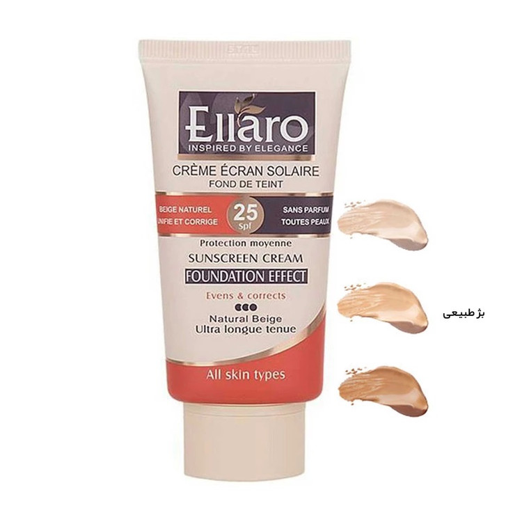 کرم ضد آفتاب رنگی بژ طبیعی الارو مدل SPF25 سری Fundation Effect مناسب انواع پوست حجم 40 میلی لیتر