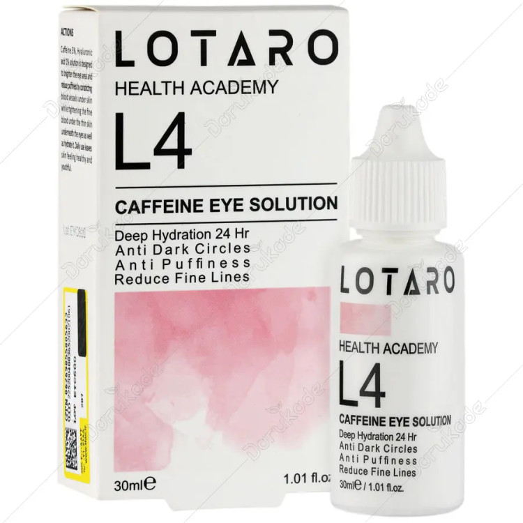 سرم دور چشم لوتارو بخاطر رقیق بودن به راحتی جذب پوست شده و باعث تحریک، سوزش، خارش یا قرمزی پوست نازک دور چشم نمی شود. این محصول حاوی ۵% کافئین و ۲% هیالورونیک اسید می باشد.
