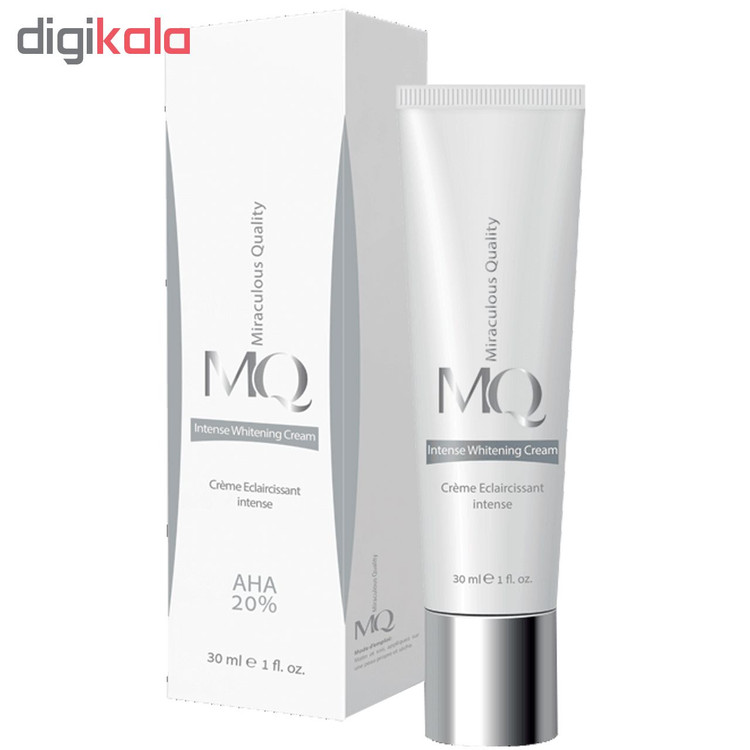 محصولات MQ ساخته شده از مواد با کیفیت می باشد. این محصولات در یکی از معتبرترین لابراتوارهای فرانسه و زیر نظر اساتید فن در صنعت مراقبت از پوست و مو فرموله شده است. این کمپانی کرم روشن کننده و ضد لک Intense Whitening Cream روانه بازار کرده است. که به واسطه تركيب موثر هیدروکینون همواره درمان قوی و سريع انواع لک محسوب می شود و در صورت استفاده صحیح از محصول، پس از دو هفته اثرگذاری قابل رويتی از خود نشان می دهد. از آنجایکه این کرم بسیار مناسب جهت از بین بردن لک های مقاوم به درمان است لذا درمانی موثر برای لک های ناشی از آفتاب، جای جوش، لیزر، پیلینگ، افزایش سن و بارداری است. از طرفی به دلیل داشتن فیلتر ضد آفتاب از پوست شما در برابر اشعه های مضر آفتاب محافظت می کند.