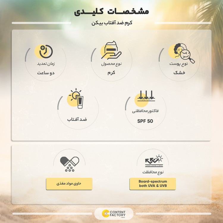 راهنمای استفاده: :قبل ازقرار گرفتن در معرض آفتاب روي پوست صورت بمالید